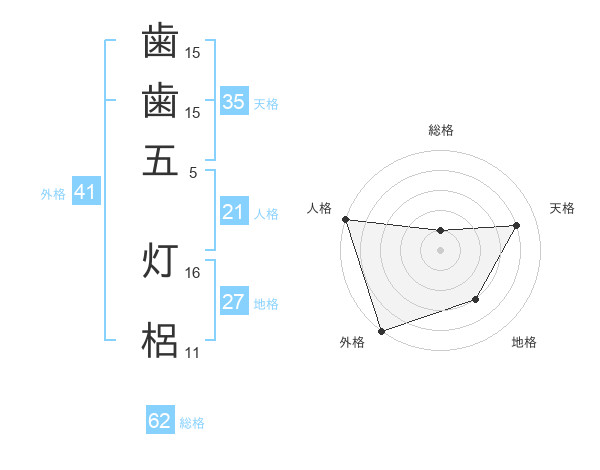 歯歯五 灯梠さんの外格は41画の5点!