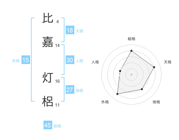 比嘉 灯梠さんの総格は45画の4点!