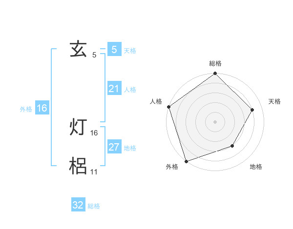 玄 灯梠さんの総格は32画の5点!