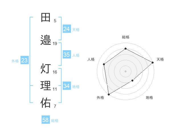 田邉 灯理佑さんの総格は58画の4点!
