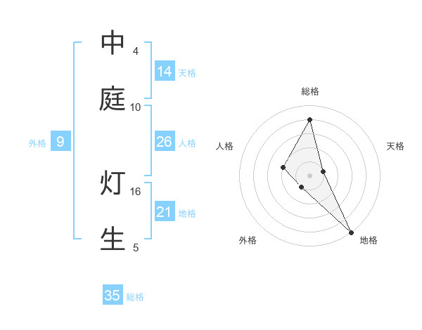 中庭 灯生さんの総格は35画の4点!