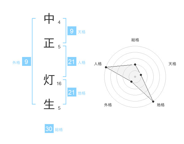 中正 灯生さんの人格は21画の5点!