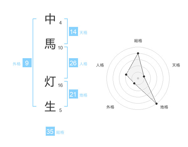 中馬 灯生さんを姓名の画数から五運を鑑定