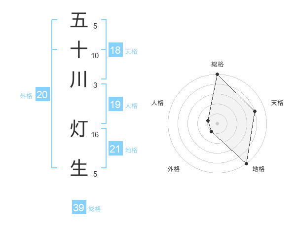 五十川 灯生さんを姓名の画数から五運を鑑定