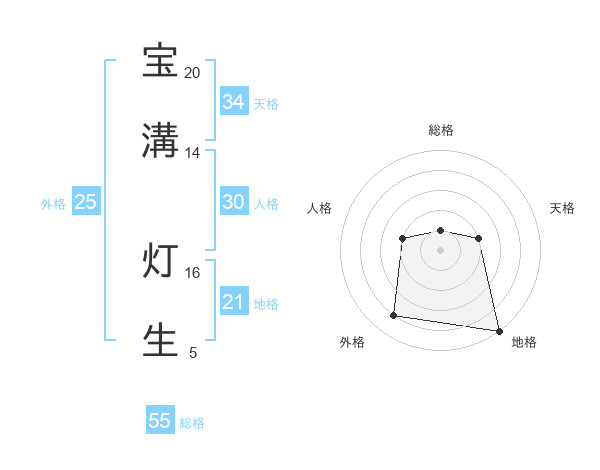 宝溝 灯生さんを姓名の画数から五運を鑑定