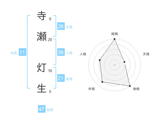 寺瀬 灯生さんの総格は47画の5点!