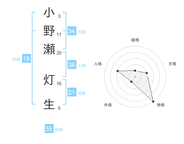 小野瀬 灯生さんを姓名の画数から五運を鑑定