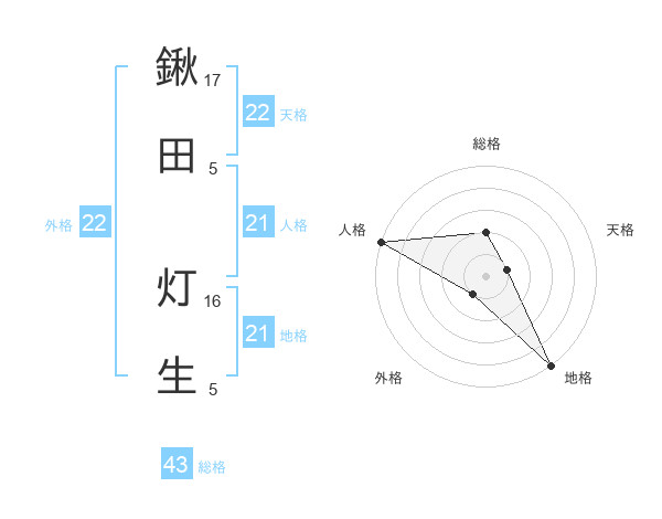 鍬田 灯生さんの外格は22画の1点!
