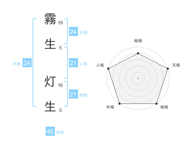 霧生 灯生さんを姓名の画数から五運を鑑定