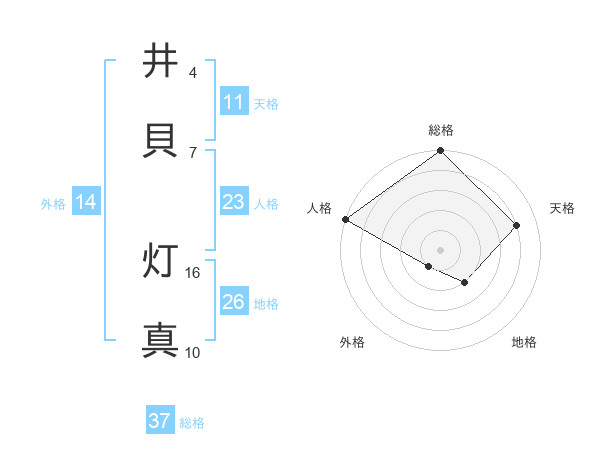 井貝 灯真さんを姓名の画数から五運を鑑定