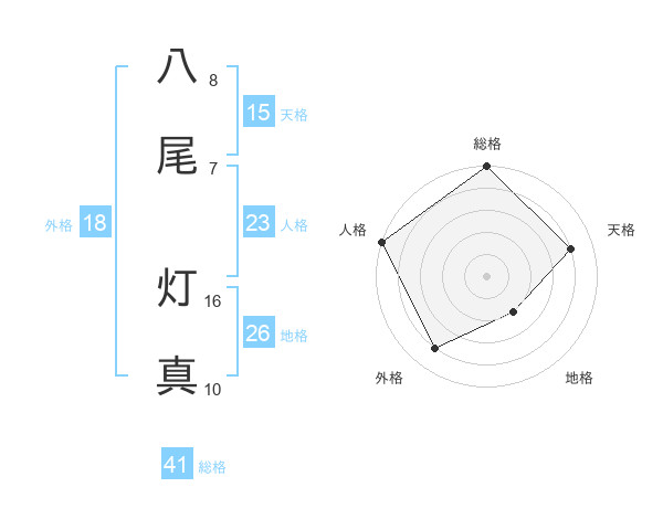 八尾 灯真さんの総格は41画の5点!