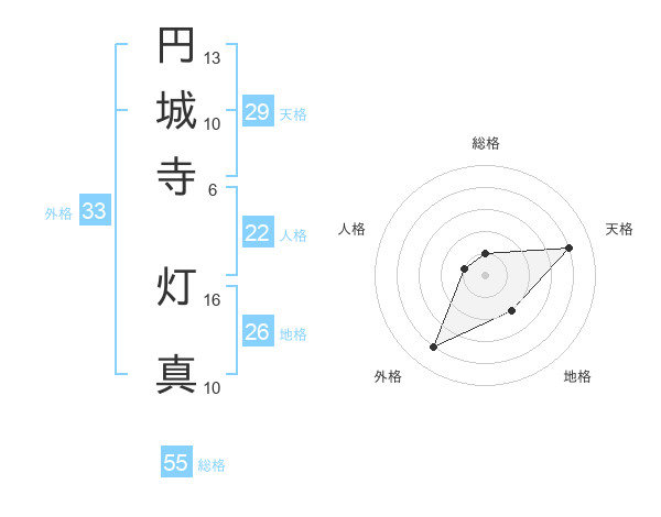 円城寺 灯真さんの総格は55画の1点!