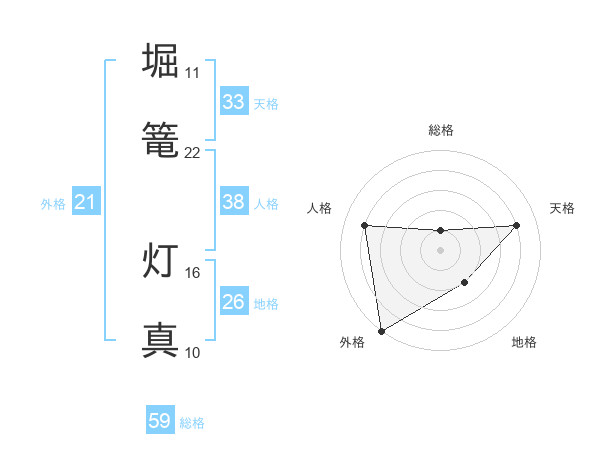 堀篭 灯真さんの外格は21画の5点!
