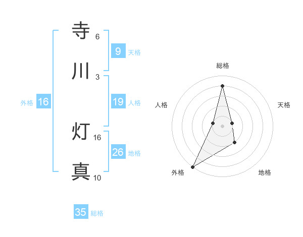 寺川 灯真さんの総格は35画の4点!