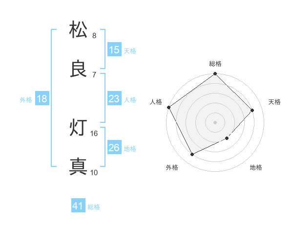 松良 灯真さんの総格は41画の5点!