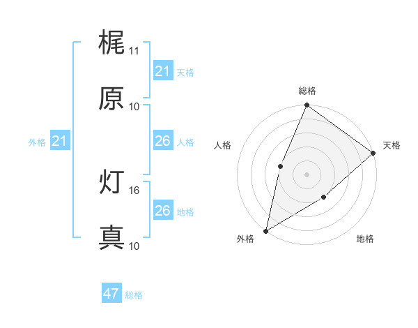 梶原 灯真さんを姓名の画数から五運を鑑定