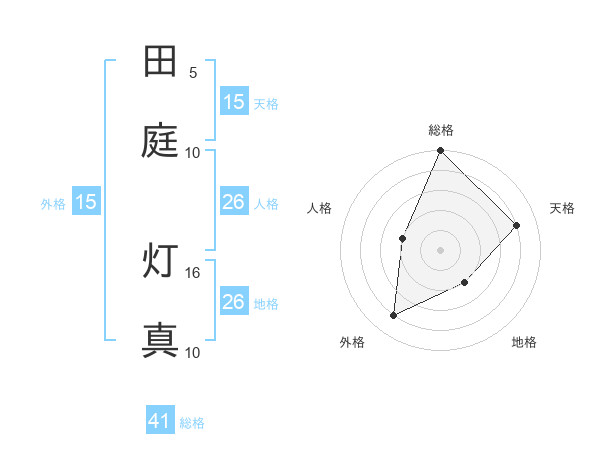 田庭 灯真さんの総格は41画の5点!