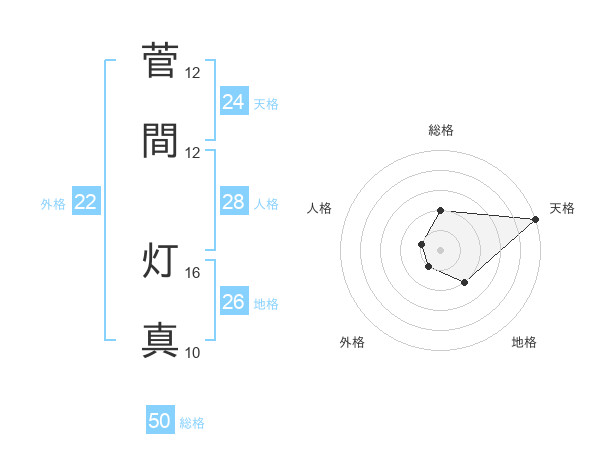 菅間 灯真さんの総格は50画の2点!