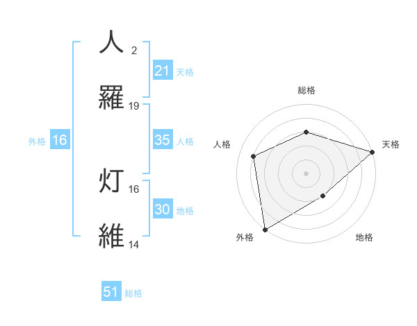 人羅 灯維さんの総格は51画の3点!