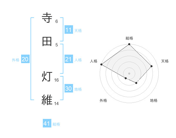 寺田 灯維さんの総格は41画の5点!