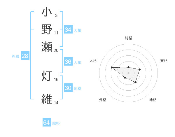 小野瀬 灯維さんを姓名の画数から五運を鑑定