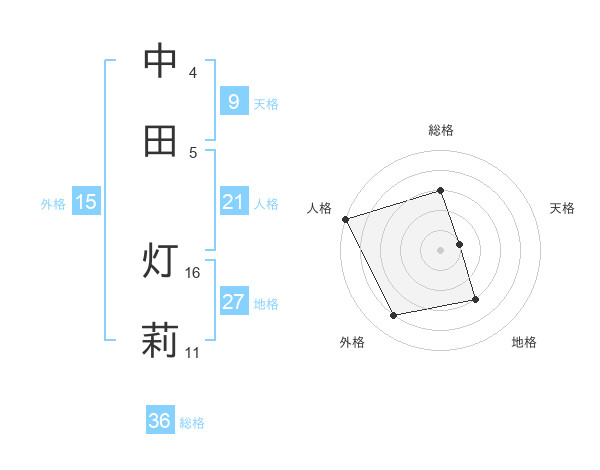 中田 灯莉さんの総格は36画の3点!