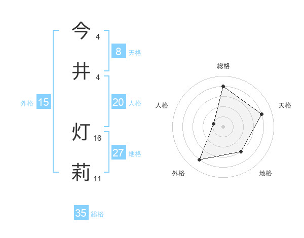 今井 灯莉さんの天格は8画の4点!