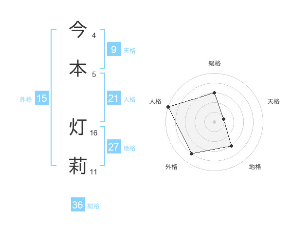 今本 灯莉さんを姓名の画数から五運を鑑定