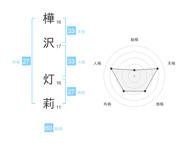 樺沢 灯莉さんを姓名の画数から五運を鑑定