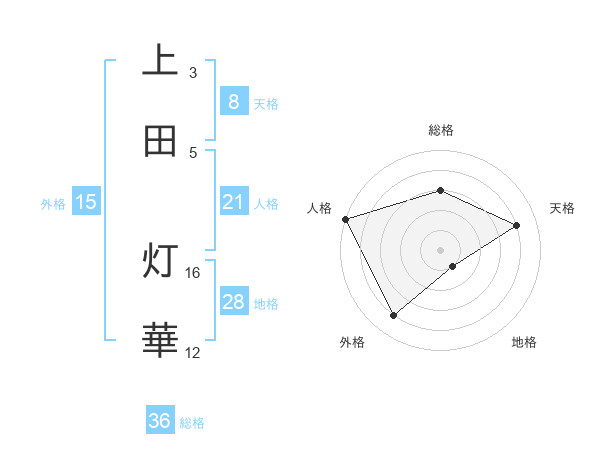 上田 灯華さんの人格は21画の5点!