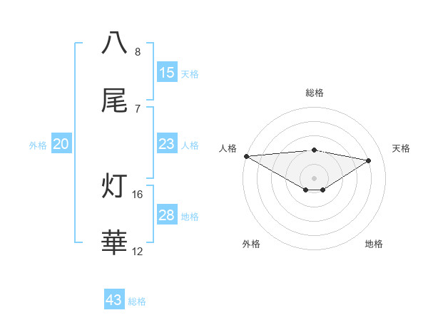 八尾 灯華さんの外格は20画の1点!