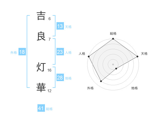 吉良 灯華さんの天格は13画の5点!