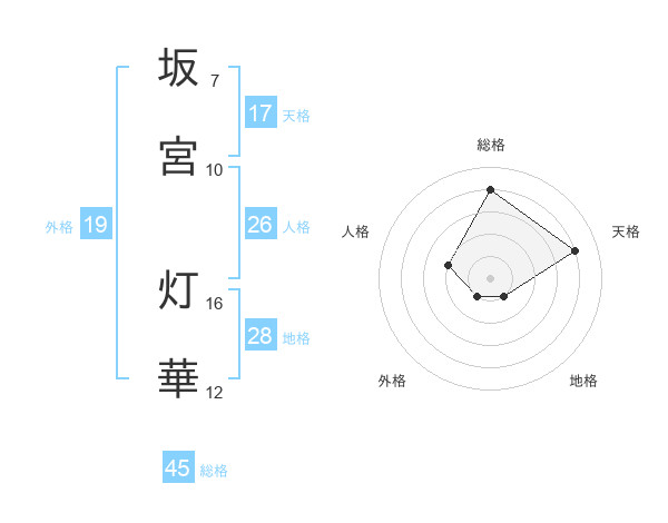 坂宮 灯華さんの総格は45画の4点!