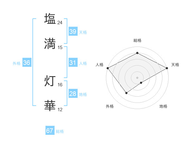 塩満 灯華さんの総格は67画の4点!