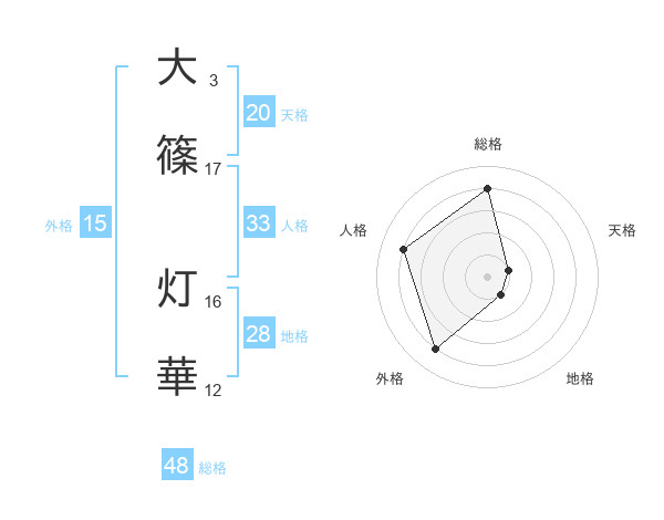 大篠 灯華さんを姓名の画数から五運を鑑定