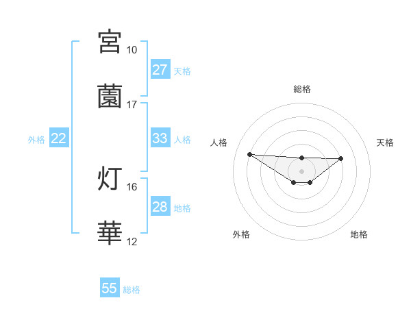 宮薗 灯華さんの総格は55画の1点!