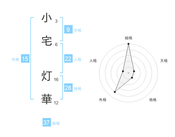 小宅 灯華さんを姓名の画数から五運を鑑定