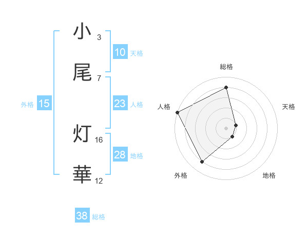 小尾 灯華さんの総格は38画の4点!