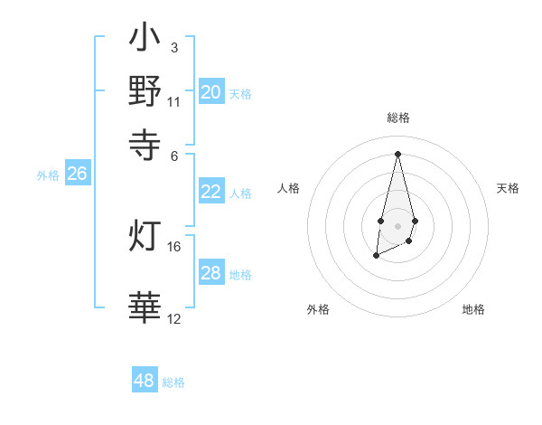 小野寺 灯華さんの総格は48画の4点!