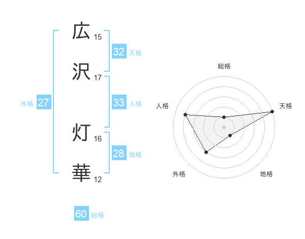 広沢 灯華さんの天格は32画の5点!