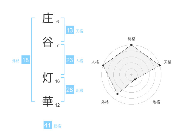 庄谷 灯華さんの総格は41画の5点!