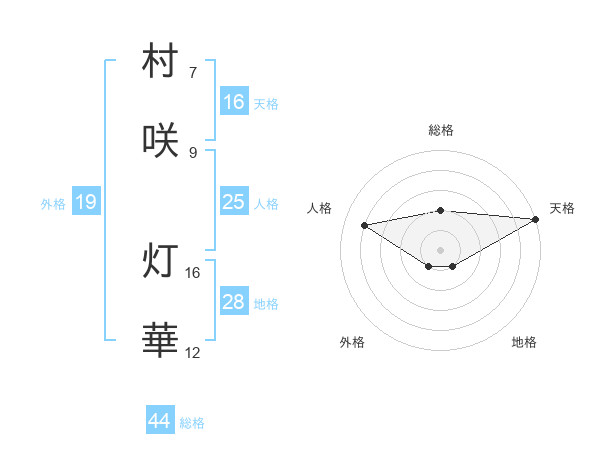 村咲 灯華さんを姓名の画数から五運を鑑定