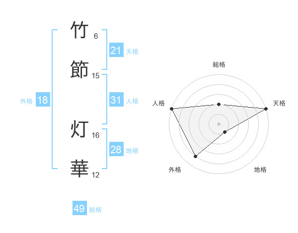 竹節 灯華さんを姓名の画数から五運を鑑定