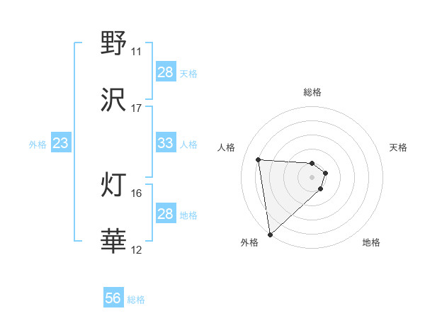 野沢 灯華さんを姓名の画数から五運を鑑定