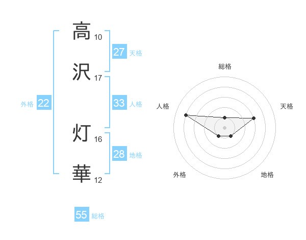 高沢 灯華さんの総格は55画の1点!