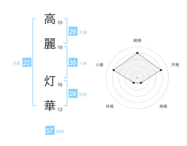 高麗 灯華さんの総格は57画の4点!