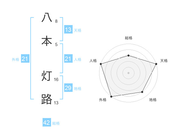 八本 灯路さんの総格は42画の3点!