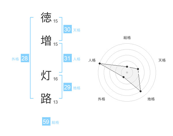 徳増 灯路さんの総格は59画の1点