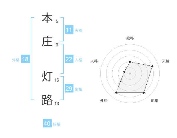 本庄 灯路さんを姓名の画数から五運を鑑定