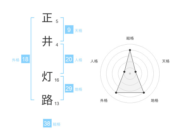 正井 灯路さんの総格は38画の4点!